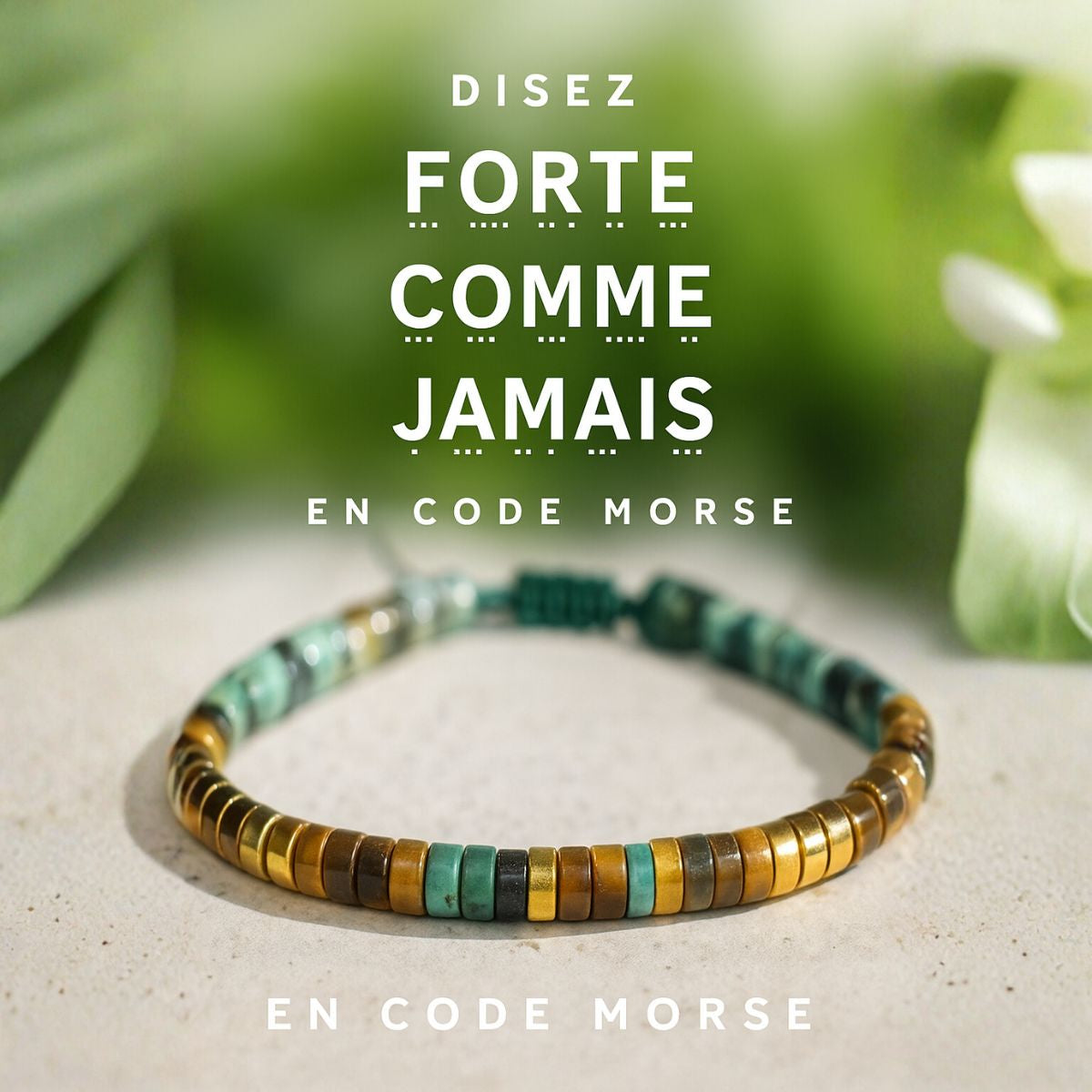 ✔ Message en code Morse caché – Un mantra puissant (“Forte Comme Jamais”) discrètement intégré dans les perles, visible seulement par toi.
